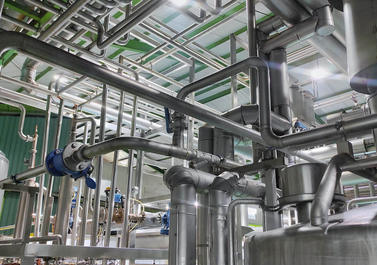 工場やプラントにおいて、水、蒸気、ガス、薬品などの流体を、安全かつ効率的に運ぶためのパイプラインを設計・施工・保守する工事です。